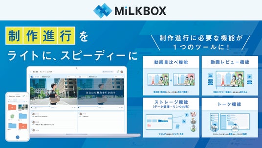 このような背景を踏まえて「MiLKBOX(https://milkbox-video.com)」は、『制作進行をライトに、スピーディに』をコンセプトに、制作にまつわるプロジェクト進行の心身への負担をライトにする為のワークフローを実現しました。