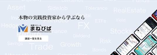 当スクールの講座や情報の配信は投資知識の学習と向上を目的としており、投資助言業にかかる内容(個別銘柄の具体的な売買について)の情報提供はございません。また、入会された方の利益の向上を保証するものではありません。投資は自己責任となりますのでご了承ください。その他注意事項については、「まねびば」公式サイトの以下ページをご参照ください。