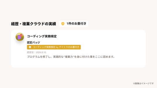 そこでこの度、Webスキルを習得できるオンラインスクールの運営企業であるデイトラと当社が協力し「コーディング実務検定」を開発いたしました。本検定では、コーディングの専門的な知識やスキルだけではなく、業務委託/複業として働く際のマナーやマインドセット、トラブル対応まで身に着けることができます。本検定を取得していただくことで、実務経験が無くても安心してフリーランスや複業に挑戦することができます。また、発注者側も適切なスキルとマナーを持つ人材の見極めが可能となります。