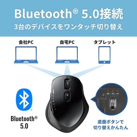 メルコホールディングス(東・名 6676)グループの株式会社バッファロー(本社:名古屋市、代表取締役社長:牧 寛之、以下バッファロー)は、ペアリングした3台の機器をマウスの底面にあるボタンで切り替え可能、Bluetooth(R)5.0に対応した静音5ボタンマウス「BSMBB540シリーズ」を2024年8月下旬より順次出荷、販売いたします。