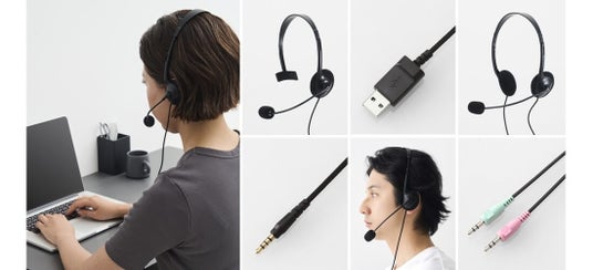 Web会議やビデオ通話、オンラインゲームでの音声チャットに最適な片耳および両耳のオーバーヘッドタイプのヘッドセットです。
