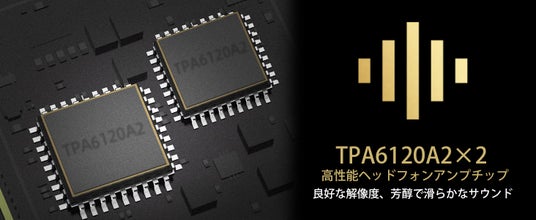 ES9039SPRO DACの優れた性能をサウンドへと踏襲すべく、低歪みで高性能なヘッドホンアンプIC「TPA6120A2」を2基採用したアンプ回路を採用しました。