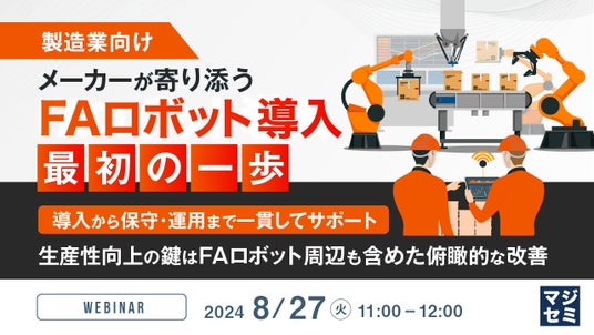 マジセミ株式会社は「【製造業向け】メーカーが寄り添うFAロボット導入 最初の一歩」というテーマのウェビナーを開催します。
