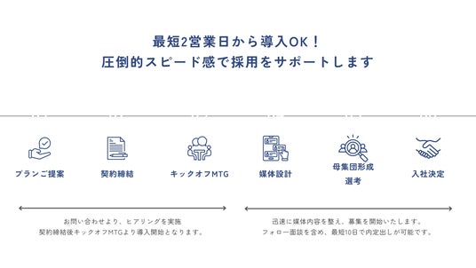 本部門では、企業の採用プロセス全体をサポートし、最適な人材を迅速に見つけ出すことで、企業の成長を支援いたします。