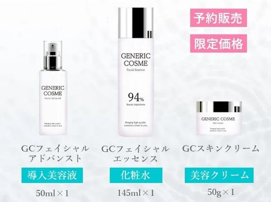 広告費やブランド料、パッケージ費用をコストに還元し、『高品質な化粧品をもっと一般的に幅広い方に継続して利用できるものにしたい!』そのような想いからジェネリック化粧品を立ち上げ、スキンケア製品を販売しています。