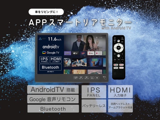 新型AndroidTVリアモニター「AN-M011」が、株式会社慶洋エンジニアリングから発売!11.6インチのIPSパネルを搭載!上下左右178°の広視野角で車内どこからでもクリアな映像を楽しめます。