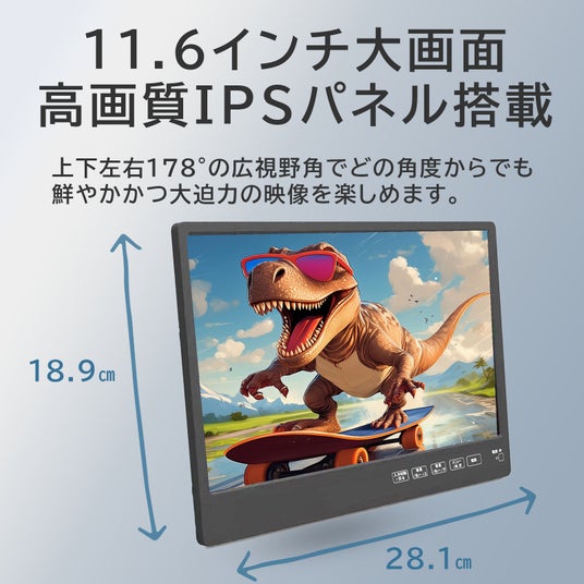 11.6インチ・高画質IPSパネル搭載 大迫力の11.6インチ画面で、映画や動画を車内で楽しむことができます。長距離ドライブや旅行中のエンターテインメントに最適です。