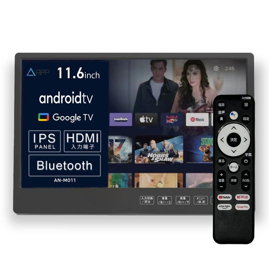 「AN-M011」は、既存モデル「AN-M010」の優れた機能を継承しつつ、さらなる進化を遂げたAndroid TVリアモニターです。11.6インチのIPSパネルは、上下左右178°の広視野角なので、どの角度からでも高画質な映像を楽しめます。Google音声リモコンにより、運転中でも音声だけでコンテンツの操作が可能です。長距離ドライブで、後部座席のお子様が飽きることなく、大好きが動画を観て楽しいドライブの時間を過ごせます。また、バッテリーレスなので550ℊと軽く、持ち運びにも便利です。付属のACアダプターとスタンドを使用することで、キッチンや寝室でも利用できます。