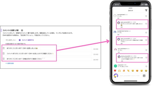 これまでコメントへの自動返信は、すべてのユーザーに同じコメントの返信しかできませんでした。