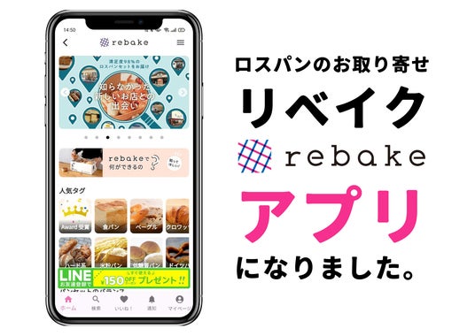 パン屋の店頭で売り切れなかったパン、「ロスパン」を、全国のパン屋からお取り寄せできる通信販売サービス、「rebake」のアプリです。