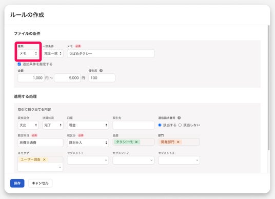 - freee会計の「ファイルの登録ルール」においてはアップデートを行い、メモ欄からの情報をもとにしたルール作成が可能になりました