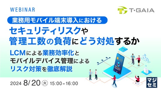 マジセミ株式会社は「業務用モバイル端末導入におけるセキュリティリスクや管理工数の負荷にどう対処するか」というテーマのウェビナーを開催します。