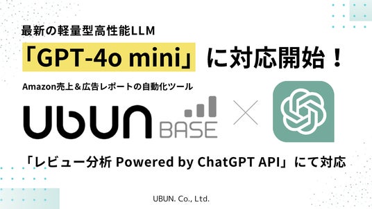 Amazonに特化したマーケティング・テクノロジー・ファイナンスによって、ECブランドの成長を実現する株式会社ウブン(東京都港区 代表取締役社長 森岡健太郎)は、Amazonレポートの自動化ツール『Ubun BASE』のレビュー分析機能が、Open AI社が提供する最新の軽量型高性能LLM「GPT-4o mini」に対応しました。