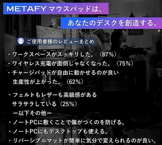 1.【両サイドワイヤレス充電対応】MagSafe×急速充電MAX15W出力 2.【デスクトップもノートPCも"神"フィット】ワークスペースの生産性を向上! 3.【リバーシブルマウスパッド】グレーフェルト/ブラックPUレザー