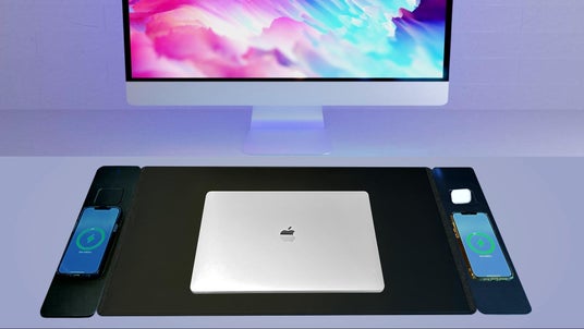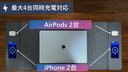 チャージパッドは自由自在に配置を変えられる。MagSafe採用のため、スマートフォンも充電したままでOKだ。