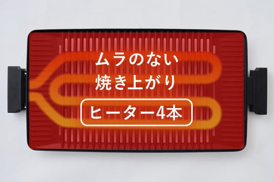 4■ムラなく焼ける4本ヒータープレートにはヒーターを4本内蔵し、