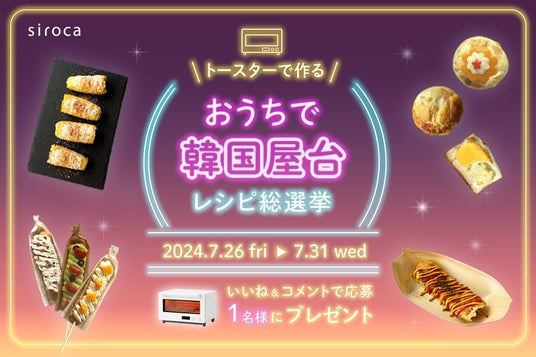 シロカ株式会社(東京都・千代田区)は、本日7月26日よりシロカ公式Instagramにて、夏休みのキャンペーン第1弾として「おうちで韓国屋台!レシピ総選挙」と題したプレゼントキャンペーンを実施します。
