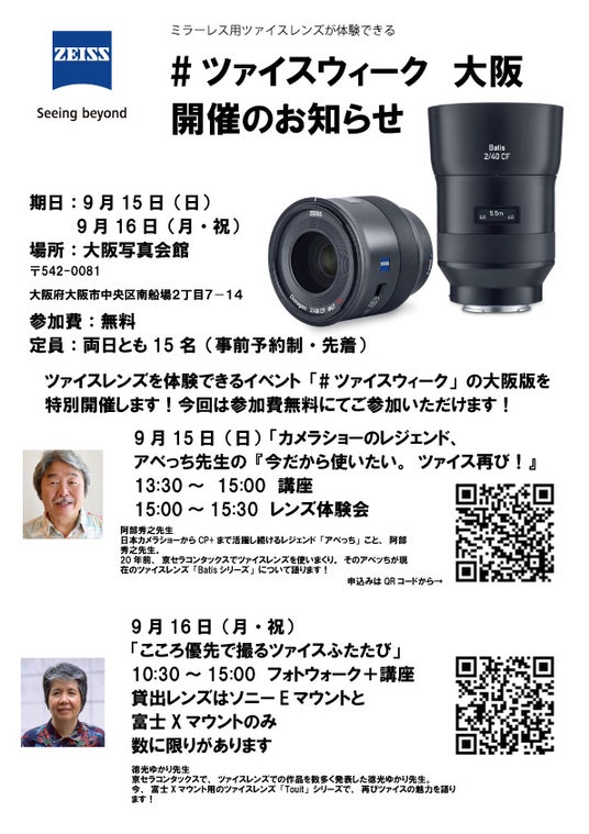 9月15日(日)「カメラショーのレジェンド、アベっち先生の「今だから使いたい。ツァイス再び!」