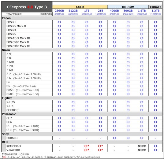 また、CFexpress 2.0への下位互換があり、CFexpress 2.0対応カメラやカードリーダーで利用した場合には、CFexpress 2.0 Type B GOLDカードと同等の性能を発揮します。
