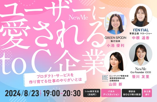 "自分の人生を自分でハンドリングし、前向きに生きる女性を増やす"というビジョンを掲げ、意思ある女性のキャリア支援を展開する「NewMe」。今回のキャリアイベントのテーマは【ユーザーに愛されるto C企業~プロダクト・サービスを作り育てる仕事のやりがいとは~】。