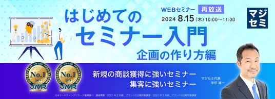 マジセミ株式会社は、大変好評をいただいた「【再放送】はじめてのセミナー入門~企画の作り方編~」というテーマのウェビナーを再放送します。