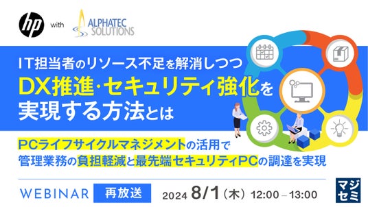 マジセミ株式会社は、大変好評をいただいた「【再放送】IT担当者のリソース不足を解消しつつ、DX推進・セキュリティ強化を実現する方法とは」というテーマのウェビナーを再放送します。