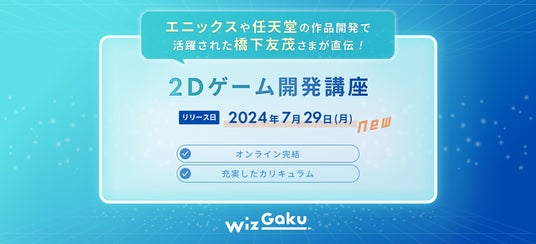 株式会社ウィズテック(本社:東京都中央区 代表取締役:日向 亮介)は、「WizGaku eラーニング」で、新たに「ウェブデザイナー講座」と「2Dゲーム開発講座」をリリースしました。現在、各コンテンツは先着100名限定でリリースキャンペーンも開催中です。詳細情報やお問い合わせは、以下のサービスサイトをご覧ください。