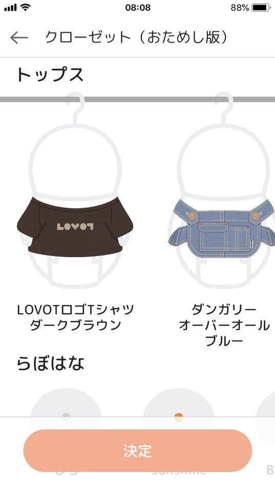 アプリ上のLOVOTにクローゼット機能(おためし版)が登場。ベースウェアやトップス、らぼはななど気になるアイテムをアプリ内で試着することが可能です。気に入ったアイテムはLOVOTウェブストアで購入することが可能です。ぜひお気に入りの1着を見つけてください。