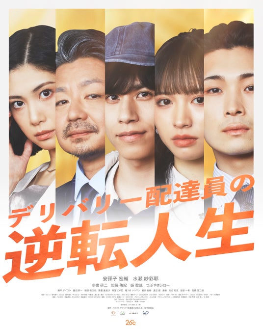 「デリバリー配達員の逆転人生」では、主演を務める安孫子 宏輔(黒木 裕太 役)のほか、総勢18名のキャストが爽快ストーリーを熱演。水橋 研二が演じる大企業の創業者(玉城 茂夫 役)の娘役に、若年層を中心に支持を得る水瀬 紗彩耶がヒロイン(玉城 美奈 役)としてストーリーを盛り上げていきます。さらに、初の縦型ショートドラマ出演となったお笑い芸人のつぶやきシローが大企業創業者の執事役として、ドラマの重要なポストを担います。