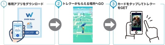 NFTは、アプリ内の3Dマップに点在するピンスポットに近づいてそのピンをタップすることで、自動的にWeb3ウォレットの「ダイバーウォレット」に接続され、NFTを簡単に受け取れる仕組み(タップトゥーゲット)となっています。