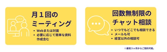 - 上記はご契約から3ヶ月間の限定料金です。4ヶ月目以降は通常の顧問契約料となります。(勝手に契約更新されることはありません。)