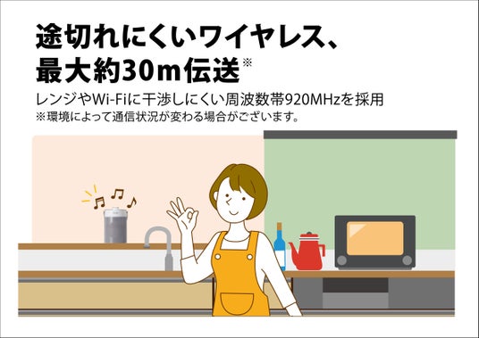 電波干渉を受けづらい920MHzの周波数帯を採用しているので、音が途切れにくく、聞き取りやすいテレビ用ワイヤレススピーカーです。