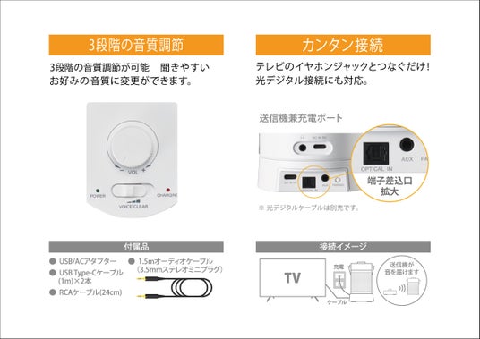 また、3段階の音質調整ができるので、ご家族と一緒にテレビを視聴する場合でもご自身の聞きやすい音質に設定することが可能です。