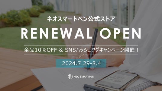 アナログとデジタルを繋ぐ専門企業NeoLAB株式会社(読み:ネオラボ、以下NeoLAB)は、ユーザビリティ向上のため、2024年7月29日(月)にNeo smartpen公式オンラインストアをリニューアルオープン致しました。また、リニューアルオープンを記念して本日より7日間、全商品10%OFFセールを開催いたします。