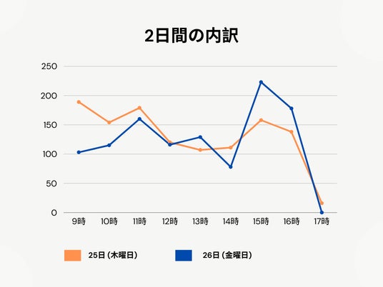 ブース内に多くの来場者が訪れるピーク時間を把握することで、その時間帯の人員を補充するなど、1日ごとに展示会スタッフの配置や動き方を変更し、機会損失を防ぐことを意識しました。