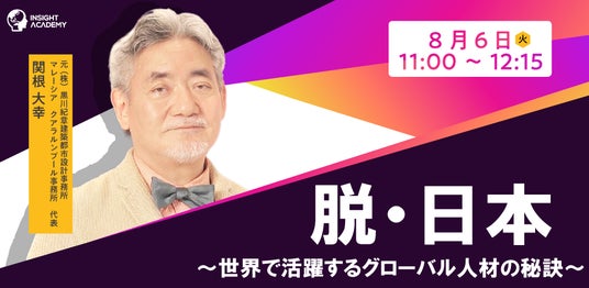 グローバル人材育成・研修業を手掛けるインサイトアカデミー株式会社(本社:東京都港区新橋、代表:金 珍燮)は、無料webセミナー「脱・日本~世界で活躍するグローバル人材の秘訣~」を2024年8月6日(火)11:00より開催します。