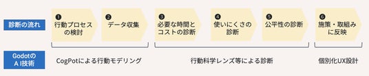 ※1スラッジ診断とは、Webサイトや申請フォーム等において、利用者の意思決定や行動変容を妨げているポイントや要因(スラッジ)を行動科学の視点で可視化し、改善していく取り組みです。