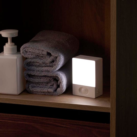 暗い場所でセンサーが人の動きを検知すると、自動で点灯するLEDナイトライトです。スイッチで常時点灯にも切り替えができるので、就寝前のナイトライトとしてもご使用できます。乾電池式のため、コンセントがない場所でも設置場所を選びません。