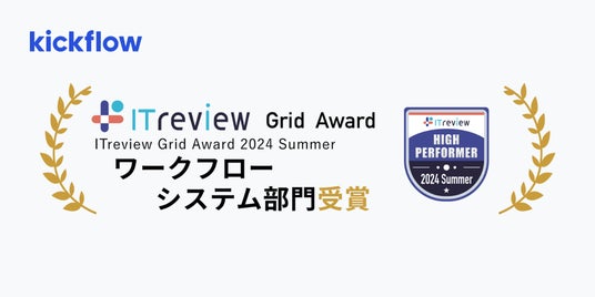 エンタープライズ企業向けクラウドワークフロー「kickflow」を提供する株式会社kickflowは、アイティクラウド株式会社(本社:東京都港区、代表取締役社長:黒野 源太)が主催する「ITreview Grid Award 2024 Summer」のワークフローシステム部門にて「High Performer」を受賞したことをお知らせします。