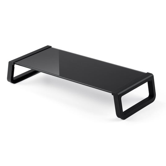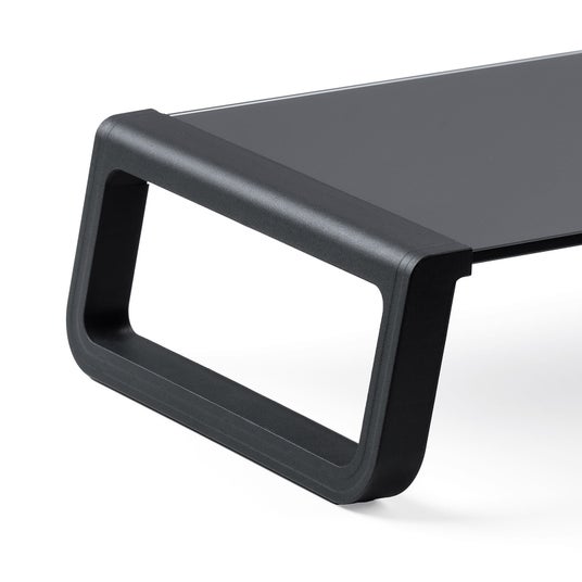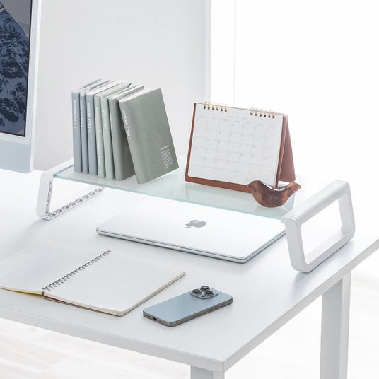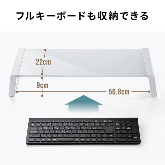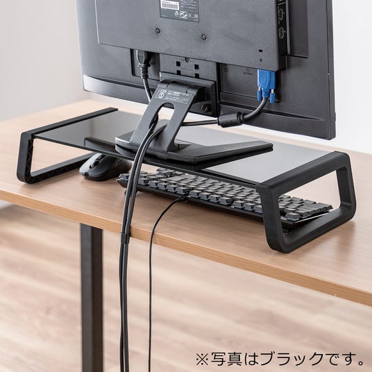 モニター下を有効活用し美しさと耐久性を両立した強化ガラス机上台