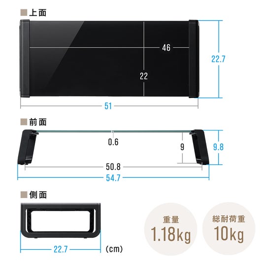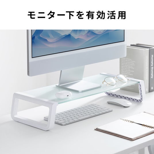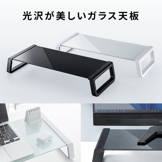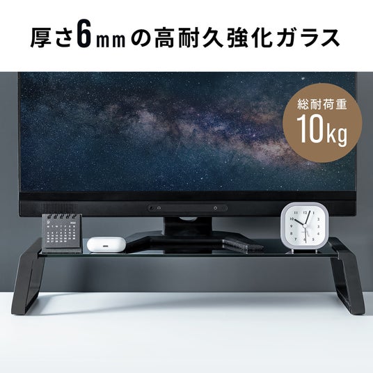 モニター台 机上台 幅54.7cm 強化ガラス 耐荷重10kg モニター下収納