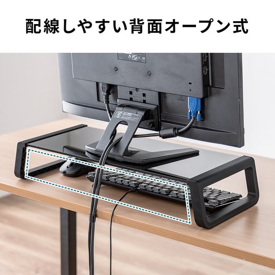 背面に板などの障害物が無いため、ケーブル類をスッキリと整理できます。見た目もきれいで作業の邪魔にもなりません。