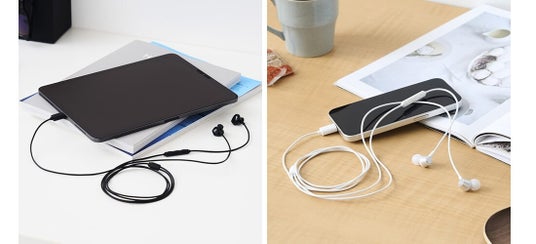 装着性で選べるように、圧迫感のないインナーイヤータイプと、音漏れしにくい耳せんタイプをご用意しています。カラーはそれぞれ4色から選べます。ケーブルにはリモコン付きマイクを装備し、ハンズフリー通話に対応し、音量調整や再生の開始/停止などが可能です。