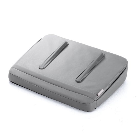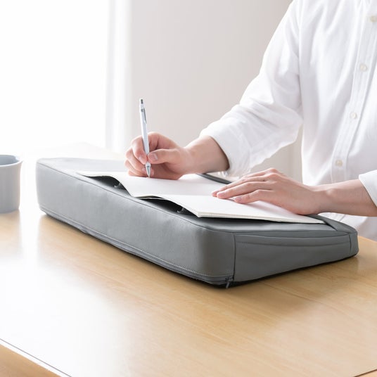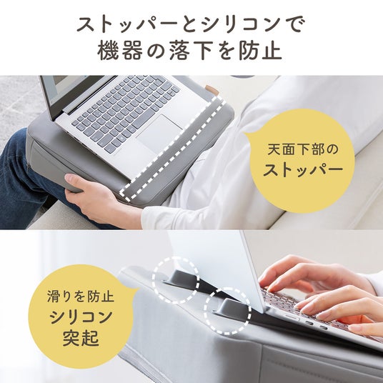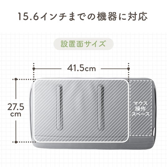 表面は手触りの良い高品質生地を使用し、内部は程よい硬さのクッション入りで快適さ抜群。200-HUS017GYは横幅が43cmで重量は390g、200-HUS018GYの横幅は54cmで重量は490gとなっており、軽量で持ち運びも簡単です。15.6インチまでのノートパソコンやタブレットにも対応し滑り止め加工や熱対策のシリコン突起も備え、使い勝手も抜群です。