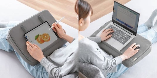 軽量で小物ポケット付きの洗濯可能なカバーで常に清潔感を保てる膝上テーブル