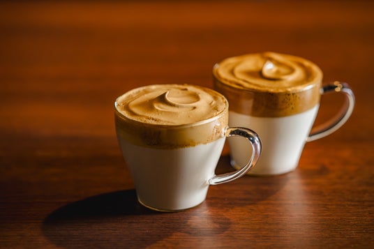 ふわふわになるまで泡立てたコーヒーを牛乳の上にのせれば、二層に分かれた見た目が楽しい「ダルゴナコーヒー」の完成!