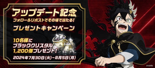 アップデートを記念して、公式X(旧Twitter)ではフォロー&リポストでブラッククリスタル1,200個が当たるキャンペーンを開催中です。