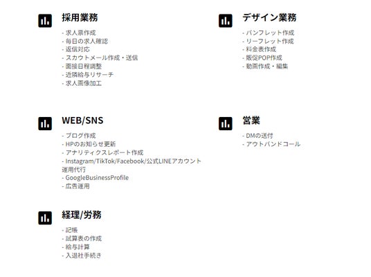 - その他、様々な業務を支援しておりますので、気軽に担当者までご相談くださいませ。