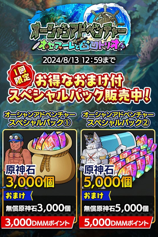 1回購入限定の「オーシャンアドベンチャー~オセアーレと凸凹トリオ~」スペシャルパックが2種期間限定で登場!
