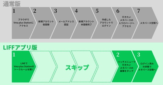 新規アカウント登録やログインの作業も不要。LINEからメタバースへシームレスなアクセスができることで、より多くのユーザーへ新たな体験価値の提供が可能に。